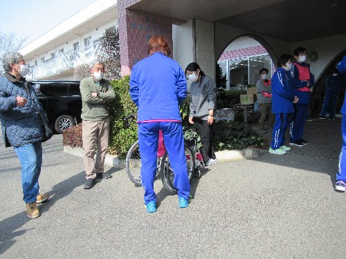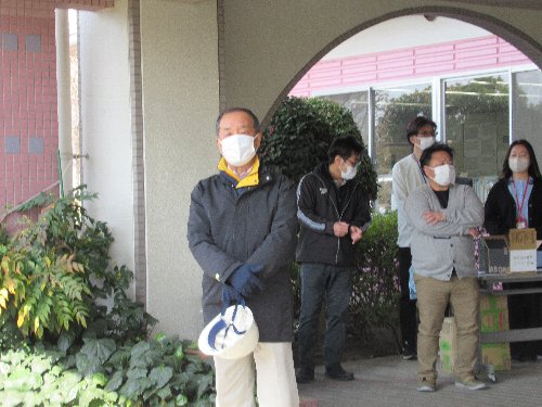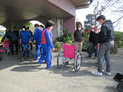 | ロータスヴィレッジの防災訓練について 日時 令和3年3月28日(日)午前10時00分から 場所 ロータスヴィレッジ 準備 ヘルメット 訓練内容: 施設見学、車椅子体験学習、 その他 服装は、動きやすい軽装でお願いします 協力は、豊城町防災協力員(区役員、豊生会、友の会)の皆さんです 令和3年も、新型コロナウイルスの感染防止対策が必要なため、ロータスの希望により、施設内には入らない訓練にとどめたいとの事でした。 あいさつと訓練内容の説明後、施設の外部から、設備の説明と車いすの取り扱い方について学びました。 R02の訓練状況写真 ■R3年3/28 玄関前で、ロータスヴィレッジ施設長と臂市長・区長のあいさつ 10:00 ■ 施設の設備説明 10:05〜10:20 ■ 車いすの取り扱い方の講習 10:20〜10:40 |