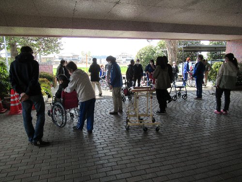 | ロータスヴィレッジの防災訓練に参加しました 日時 平成31年3月24日(日)午前10時00分から 場所 ロータスヴィレッジ 準備 ヘルメット 訓練内容: 施設見学、車椅子体験学習、火災時避難訓練(夜間想定) その他 服装は、動きやすい軽装でお願いします 協力は、豊城町防災協力員(区役員、豊生会、友の会)の皆さんです H29の訓練状況写真 ■H31年3/24 ロータスヴィレッジ所長と区長のあいさつ 10:00 ■訓練説明 ■ 館内施設の見学 10:20〜10:40 ■ 歩行補助用車と車椅子の使い方と注意 10:45〜11:15 ■訓練開始 避難場所へ誘導 ■避難場所へ誘導 ■消防署の講評(概ね良好、現場へ入るとき煙を吸わないように注意) |