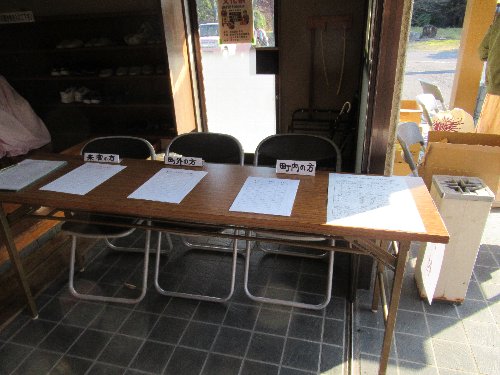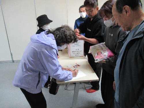 開催結果写真 ■前日準備 ■11/25作業前のあいさつと衝立設置・作品展示 ![]() ![]() ![]() ![]() ![]() ![]() ![]() ■文化祭当日 ■開会式 ■文化祭の様子 朝から大勢の皆さんが集まって下さいました。9:30からの開会式で実行委員長と区長の他、御来賓の皆様から挨拶を頂きました ![]() ![]() ![]() ![]() ■即売会 ■10時~家庭菜園・友の会・日本赤十字奉仕団・ボランティアなでしこが販売協力いただき、大変な盛況でした。30分ほどで完売されました。 ![]() ![]() ![]() ![]() ![]() ![]() ![]() ■交通整理も大切です ![]() ■創作展示作品 ■受付し、くじ引き用抽選券を頂く、展示作品を見学後抽選会場へ 当日は、御来賓を初め沢山の皆様に、即売会・作品見学・抽選会を楽しんでいただきました ![]() ![]() ![]() ![]() ![]() ![]() ![]() ![]() ![]() ![]() ■15:00-片付け ![]() ■ゲームコーナー 11:00-ゲームコーナーでは、輪投げとグランドゴルフの景品付きゲームが開かれました ![]() ![]() ■抽選会10:00-14:30 景品は、⑧等:ボックステッシュ1箱58点、⑦等:ボックステッシュ2箱セット35点、⑥等:ボックステッシュ5箱セット25点、⑤等:ジャム1瓶10点、④等:商品券5点、③等:新米2㎏10点、②等:新米5㎏10点、①等:新米10㎏2点、合計150点で先着ハズレ無しのくじ引き方式の抽選会でした ■会場と賞品 ![]() ![]() ![]() ■ラッキーな人 おめでとうございました ![]() ![]() ■実行委員代表者会議 令和5年10月1日(日)午後6時00分~ 区民会館 開催日の決定と委員メンバーの確認等を協議 ■10/1実行委員会代表者会議の様子 文化祭広報ポスター ■文化祭作品募集回覧を見る(PDFファイル) ■実行委員会 10月28日(土)午後6時00分~ 区民会館 ■準備 展示準備は前日25日(土)の午後1時~ ■開催日 8時00分~準備・受付、9時30分開会式 10時~野菜即売会、出展展示、くじ引き抽選会(14時30分まで) ■片付け15時~ |