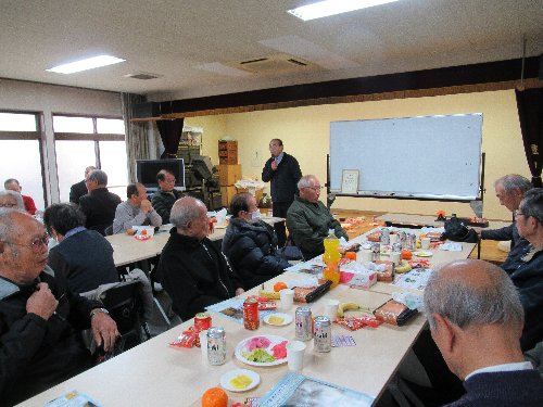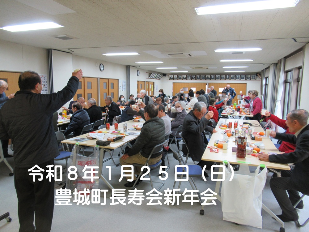 | 2026年(令和8年)長寿会新年会のお知らせ ![]() 日 時 令和8年1月25日(日)午前11時30分より 場 所 豊城区民会館 会 費 1,000円 (1月17日(土)までに会費を添えて担当幹事まで申し込んでください) ■令和8年 新年会の様子 53名の会員の参加を頂きました ■R8/01/25 伊佐野会長と松村区長より新年の挨拶 ■松村区長挨拶後、乾杯!! 県老連より長寿会へ5人の入会促進で表彰を受けました ■乾杯、団欒後は、ビンゴゲームで全員が、賞品を頂きました ■盛り沢山の賞品が用意されていました ■カラオケで皆さん新年会を楽しむことができました 令和8年の新年会は、皆さん元気で楽しい2時間を過ごすことができました 全ての新年会写真は、こちらをクリック 前年の新年会はこちら ![]() |