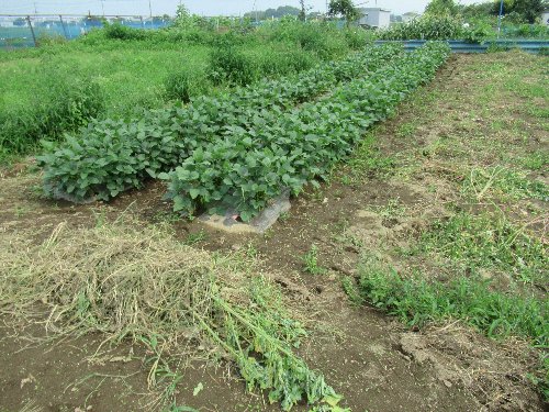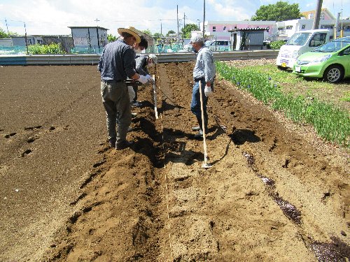 | 高齢者ふれあい農園の作業 変更後 令和4年5月8日(日)午前9:00- 変更前 なす苗等の植え付け 作業内容:なす苗、サトイモ等の植え付け作業とジャガイモ畑の除草等です。 会員皆様のご協力よろしくお願いいたします。ナスは6月下旬より収穫できる予定です。 ■R4/5/8 ナス植付作業 区長、市長、旧実行委員長退任、新実行委員長のあいさつ ![]() ■ナス苗(購入100本)、里芋140個(寄付20個)、ヤツガシラ芋(寄附20個)、タケノコ芋(寄附4個)、 子持ちネギ(寄付150本) ■ナス植付作業 ![]() ■ナスの植付完了 5列 ■里芋植付作業 ■里芋植付完 7列 ■ネギ苗植付作業(子持ちネギなので15㎝ピッチで) ■ネギ苗植付完了 2列 ■ジャガイモの除草と土寄せ作業 ■土寄せ完了 大きくなりました ■枝豆の植付準備作業(1000本分の植付はもう少し先、4月末種蒔きし現在本葉2枚) ![]() |