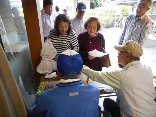 コロナ感染を避け、2日間に分けて実施しました 9月19日(土)と20日(日)午前9時~12時受付 (令和2年度 敬老御祝い品贈呈のご案内) 豊城町では本年度70歳以上になられた方(788名)、特別養護老人ホーム:ロータスヴィレッジの皆様65名を併せて853名となりました。 今年もささやかでございますが、皆様へのお祝いの品を用意してお待ちしております。 なお、コロナ感染を避けるため、9月19日(土)と20日(日)2日間に分けて行いますので、日にちをお間違えの無いよう、お願い申し上げます。 コロナ感染を避けるため、祝賀会は中止させていただきます。 豊城町区長 松村輝雄 お願いとご注意!! ◎御祝い品の受付は、午前12時までです。 (代理の方でもかまいません) ◎当日、何らかの理由でお祝い品を受け取り出来ない方へ!! (10月31日まで保管しますので区役員に連絡願います。) ◎御祝い品の交換は、案内状に本人・代理の区別とお名前を署名して提出願います。 令和2年度 敬老祝品の贈呈状況 ■9月19・20日10:00〜12:00記念品の交換は、招待状をチェックしてから受付へ ■特別受付 ■一般受付は@ABの3カ所に透明シールで仕切られ、感染防止対策がされいていました。 ■台帳で確認後、記念品(お祝い金)をいただきました ■式典や祝宴・余興披露は中止になりました ■各種団体は交通整理に協力 |