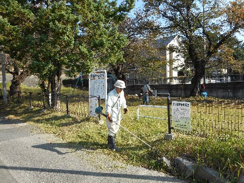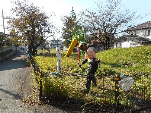 | 平成26年度 第二回緑のボランティアによる草刈り作業 10月19日(日)AM10:00より ■H26年10月 草刈りの状況(権現山) ■H26年10月 草刈りの状況(南児童公園) ■草刈り後の草を専用袋に袋詰めの作業(南児童公園) ■H26年10月 権現山の遊歩道周りと南児童公園除草作業 |