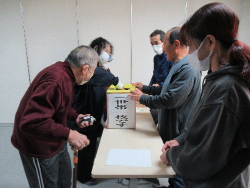 ミニバザー結果報告 日本赤十字社へミニバザーの売上金の一部を寄付いたしました。下記アイコンをクリックで、12月1日回覧PDFファイルが見られます。 ![]() 開催結果写真 R7全ての写真を、PDFファイルで見られます。下記アイコンをクリック 写真集NO1 写真集NO2 写真集NO3 ![]() NO1(実行委、前日会場作り、作品飾り) NO2(当日準備、式典、ミニバザー、受付休憩抽選) NO3(作品展示、片付け、慰労会) ■前日準備 ■11/15 13:00-作業前のあいさつと衝立設置 ■作品展示 ■11/15 15:00-作品展示飾り付け ■文化祭当日 ■準備 ■8:00-準備と広報車で文化祭開催のお知らせ!!行ってきまーす!! ■文化祭当日 ■開会式 ■文化祭の様子 朝から大勢の皆さんが集まって下さいました。9:45からの開会式で実行委員長と区長の他、御来賓の皆様から挨拶を頂きました ■ミニバザー ■10時~友の会・家庭菜園有志・日本赤十字奉仕団・サロン囲炉裏から販売協力いただき、大変な盛況でした。30分ほどで完売されました。 ■受付 ■受付し、くじ引き用抽選券を頂きました ■創作展示作品 ■展示作品を見学後、抽選会場で抽選 当日は、御来賓を初め沢山の皆様に、ミニバザー・作品見学・抽選会を楽しんでいただきました ■抽選会10:00-14:30 景品は、⑦等:ボックステッシュ1箱セット50点、⑥等:ボックステッシュ2箱30点、⑤等:5箱組ボックスティッシュ20点、④等:ジャム1瓶20点、③等:商品券5点、②等:新米2㎏10点、①等:新米5㎏5点、、合計150点で先着ハズレ無しのくじ引き方式の抽選会でした ■会場と賞品 ■後片付け15:00- ■慰労会16:00-労いのあいさつ後、豊生会会長の音頭で、乾杯!! 二日間にわたり、実行委員の皆さんには、大変ご苦労様でした!! 友の会会長の音頭で締めくくり、閉会となりました 会場準備 令和7年11月15日(土)13:00~15:00会場作り(会場係)、 15:00~17:00作品飾付け(出品者と会場係) ![]() 豊城町区民の皆さんの作品を募集します!! 作品募集:10/1回覧を見る ■第1回 実行委員(代表者)会議 令和7年10月 4日(土)午後6時00分~ 区民会館 開催日の決定と開催内容、委員メンバーの確認等を協議 今まで、家庭菜園同好会の協力で「即売会」を実施しましたが、家庭菜園同好会の解散に伴い、今回からは個人・団体等による「ミニバザー」として開催し、売り上げの一部を日本赤十字社に寄付協力していただきます。また、抽選会は、くじ引き抽選会で先着150名までとなっております。 ![]() ■ポスタ- ![]() ■第2回 実行委員(代表者)会議 令和7年10月25日(土)午後6時00分~ 区民会館 委員メンバーの決定確認・慰労会の申し込み等を協議 |