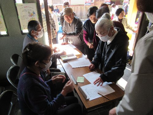 開催結果写真 ■前日準備 ■11/25作業前のあいさつと衝立設置・作品展示 ![]() ![]() ![]() ![]() ![]() ![]() ![]() ■文化祭当日 ■開会式 ■文化祭の様子 朝から大勢の皆さんが集まって下さいました。9:30からの開会式で実行委員長と区長の他、御来賓の皆様から挨拶を頂きました ![]() ![]() ![]() ![]() ■即売会 ■10時~家庭菜園・友の会・日本赤十字奉仕団・ボランティアなでしこが販売協力いただき、大変な盛況でした。30分ほどで完売されました。 ![]() ![]() ![]() ![]() ![]() ![]() ![]() ■交通整理も大切です ![]() ■創作展示作品 ■受付し、くじ引き用抽選券を頂く、展示作品を見学後抽選会場へ 当日は、御来賓を初め沢山の皆様に、即売会・作品見学・抽選会を楽しんでいただきました ![]() ![]() ![]() ![]() ![]() ![]() ![]() ![]() ![]() ![]() ■15:00-片付け ![]() ■ゲームコーナー 11:00-ゲームコーナーでは、輪投げとグランドゴルフの景品付きゲームが開かれました ![]() ![]() ■抽選会10:00-14:30 景品は、⑧等:ボックステッシュ1箱58点、⑦等:ボックステッシュ2箱セット35点、⑥等:ボックステッシュ5箱セット25点、⑤等:ジャム1瓶10点、④等:商品券5点、③等:新米2㎏10点、②等:新米5㎏10点、①等:新米10㎏2点、合計150点で先着ハズレ無しのくじ引き方式の抽選会でした ■会場と賞品 ![]() ![]() ![]() ■ラッキーな人 おめでとうございました ![]() ![]() ■実行委員代表者会議 令和5年10月1日(日)午後6時00分~ 区民会館 開催日の決定と委員メンバーの確認等を協議 ■10/1実行委員会代表者会議の様子 文化祭広報ポスター ■文化祭作品募集回覧を見る(PDFファイル) ■実行委員会 10月28日(土)午後6時00分~ 区民会館 ■準備 展示準備は前日25日(土)の午後1時~ ■開催日 8時00分~準備・受付、9時30分開会式 10時~野菜即売会、出展展示、くじ引き抽選会(14時30分まで) ■片付け15時~ |