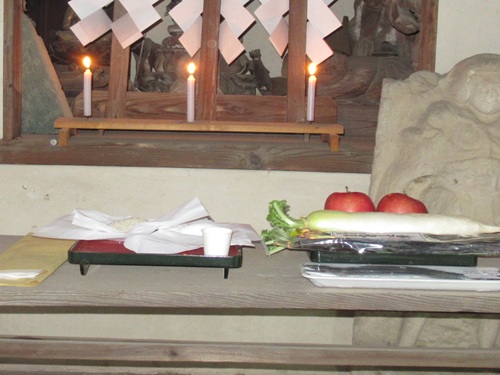 | ■R6 PM2:00〜多聞天祭の準備作業が始まりました (東参道が荒れて、石段も不安定で危険なため、R5から参拝道は、南から参拝して頂くよう変更) ■旧しめ縄を撤去し、既製品の新しめ縄に交換する作業と清掃作業。 ![]() ■しめ縄設置完了、農事組合長より奉納酒を区へ献上 ![]() ■幣束と灯り・米・塩・水・果物さらに三種の生饌(せいせん)を飾り ![]() ![]() ■PM5:00- 区長の祝詞で式典・市長・区役員と農事役員によるお清め後、参拝 ![]() ![]() ■PM5:30-区民会館にて直会(なおらい) 区長・市長挨拶後、献杯 (正式な作法:杯は持たず「献杯!」ケンパイ音頭に合わせて二拝してから、杯を持ちお神酒を頂くこと)と言われてますが ![]() ![]() |